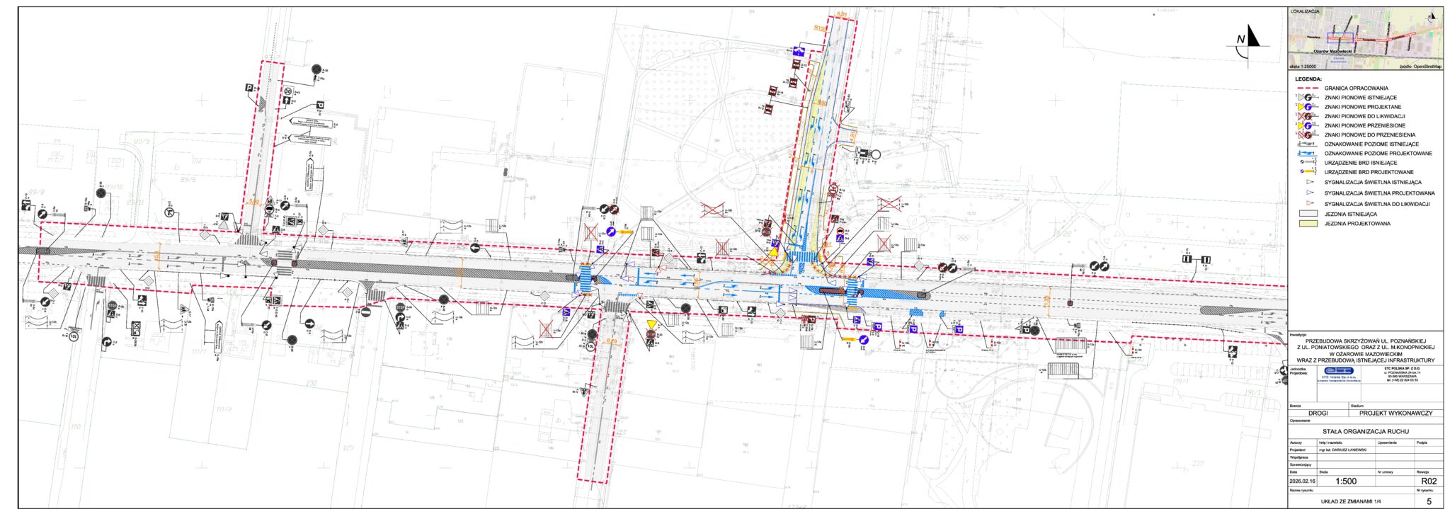Wydział Inwestycji i Remontów w załączeniu przekazuje plan rozbudowy skrzyżowania DK92 ul. Poznańskiej z ulicami Poniatowskiego i Konopnickiej w Ożarowie Mazowieckim. Zadanie jest realizowane na podstawie Porozumienia z firmą Ożarów KG Group Sp. z o.o. Sp. J. realizującą inwestycję budowy osiedla Floriana. Rozbudowa skrzyżowania w całości zostanie sfinansowana przez Inwestora.